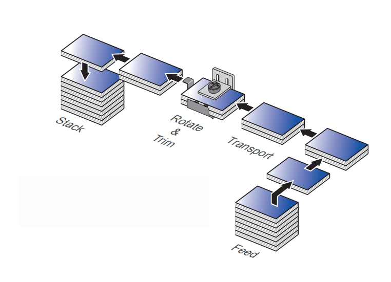 HDP TST Digital Three Side Trimmer performs book feeding, trimming, and stacking with full automation. You simply place a stack of books on the in-feed table. A suction feed system brings the books into position, where they are gripped by a robotic arm which advances the block for downstream processing.