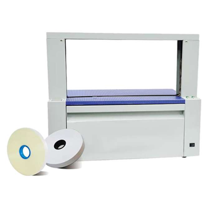 | Automatic banding machine can be used for banding 'everything', from noodles to clothing, from labels and cards to packaging inserts, ect., using kraft paper tape or OPP tape banding, the banding strength can be adjusted from 5-60N, the banding speed can be up to 26 times/min, this smart machine is needed by printing and packaging factories, offices, and retail stores. |