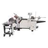 | HX500 Vertical Stacker and Bundling Delivery, own a high storage capacity for folded or bound products that is therefore particularly suitable for the processing of medium to large runs, the integrated pressing unit exhausts air to improve the folding quality, and the delivery combines with the bundling device, can setting the signature stack number, flapping the stack neat, then push to the bundling station, pressing and bundling the folded sheets (signatures), brochures, book blocks, etc., with 3000N pressure, it is fitting for industrial signature production, and is perfect for the next post-press production. |