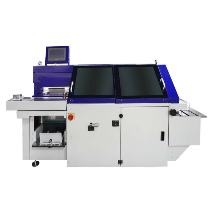 HX500PB1 Digital Perfect Binding Machine is a single-clamp system for short-run, variable, and book-of-one production, operating at up to 500 cycles per hour with a binding thickness range of 1–50 mm. It integrates clamping, spine preparation, gluing, cover creasing, and nipping into an automated workflow. A built-in caliper and 15-inch touchscreen enable automatic setup of key parameters, reducing manual adjustment and changeover time. The machine supports parameter templates and inline configurations with trimmers or automated feeding systems for digital finishing workflows.