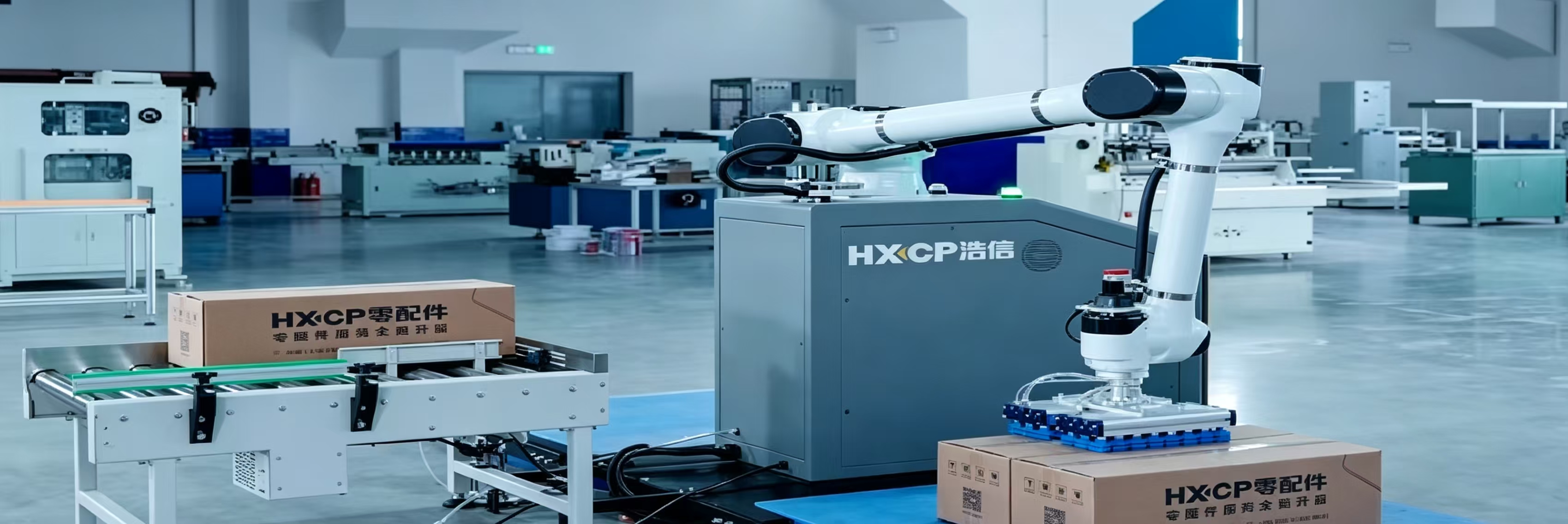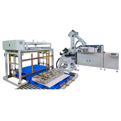 HXMN60 Robot Automatic Robotic Palletizing System for Hardcover Book is used for automatic stacking and palletizing the hardcover book, the stacks of hardcover books are transported from an automated delivery to a proper pattern on a pallet, auto load the separating sheets and the pallet, reducing the physical demands of the operator, truly fits the new print market demanding high productivity with minimal labor.
