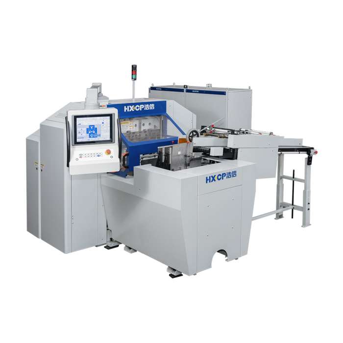 | HX150DH Three-knife Trimmer is the ideal high-speed three-side cutting equipment for perfect binding books, can be used alone, and can also connect with the high-speed perfect binding line, to achieve stable high-speed three-side trimming of perfect binding books and book blocks, with the speed of 4,200 cuts per hour, that's why HX150DH Three-knife Trimmer can perfect match with the high-speed perfect binding line, which with the speed can be up to 18000 books per hour. Adopting the stream feeding method to feed the books into the stacking station, adjust the height of the pusher to push the books to realize multi-book cutting. |