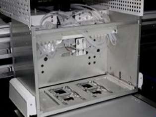 | HXEP400 Book Edge Digital Printing Machine uses 2 sets of micro piezoelectric nozzle inkjet digital printing way to process the file, which can print any graphic patterns with 4 colors or 8 colors ink, on the edge of the hardcover book, notebook, sticky notes blocks, etc. Equipped with 2 working stations, when one station is printing, the operator can feed or discharge the books on the second station, when the first station finished printing, the print head will move to the second station to continue printing, so the operator can handle with the first station at the same time, non-stop ink jetting will avoid nozzle clogging. |